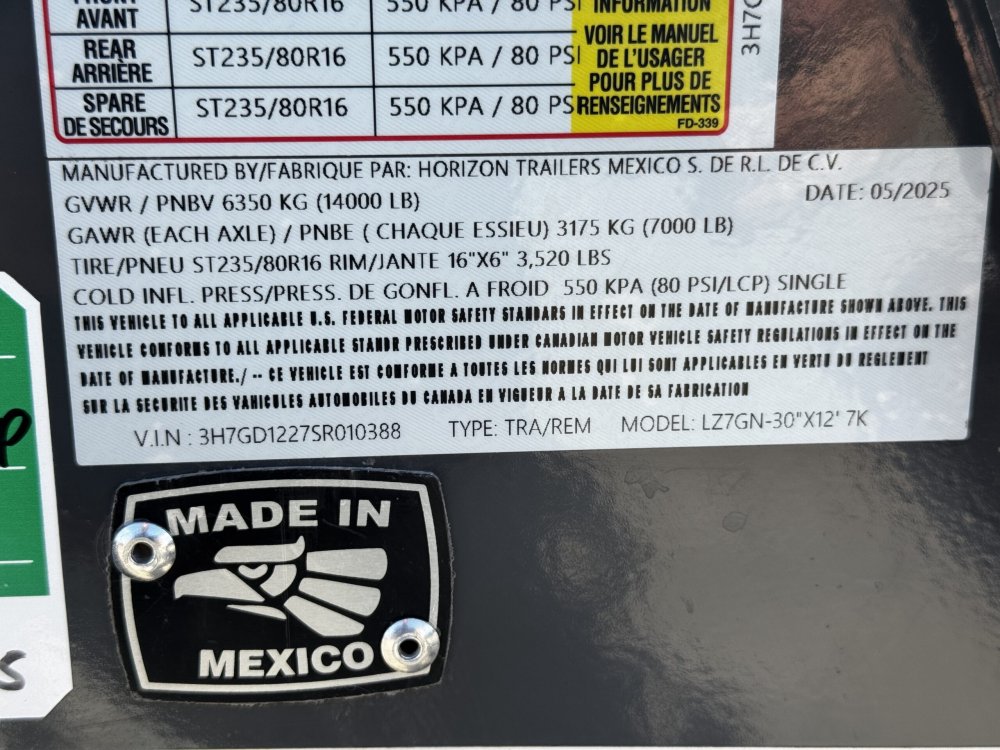 83"x12' Horizon LZ7 Dump