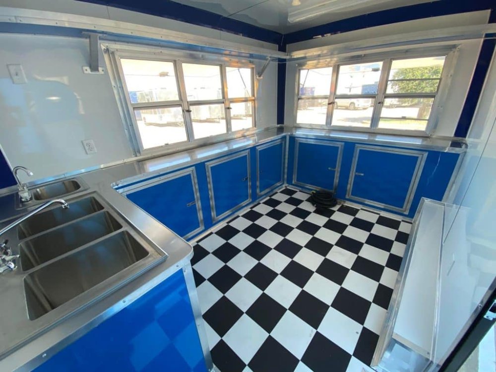 This Quality Trailers 8.5×12 Concession Trailer combines functionality, style, and efficiency, making it perfect for food and beverage businesses looking for a premium, mobile workspace. Its sleek Blue with Blackout Package adds a professional and eye-catching aesthetic.