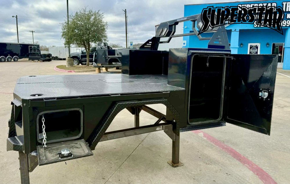 The ARMOR-DECK Premium Flatbed Truck Bed from Bed Boss is a heavy-duty, skirted flatbed engineered for real-world work applications. Built on a reinforced 4" steel channel frame with a diamond-plate steel deck, this flatbed is designed to handle daily jobsite demands while maintaining a clean, professional appearance and offering accessible integrated utility.