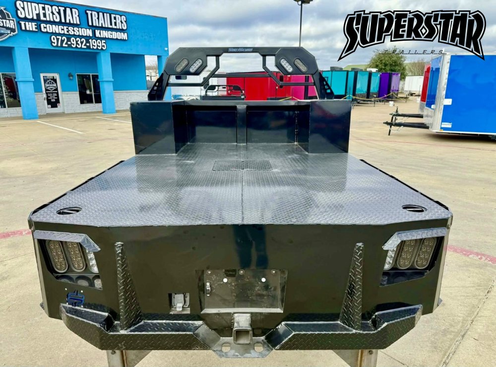 The ARMOR-DECK emphasizes strength, utility, and safety with closely spaced crossmembers for rigidity, a reinforced cab shield/headache rack to protect the cab and load, and robust rub rails with stake pockets and spools for flexible tie-down options. LED lighting with weather-resistant wiring ensures reliable visibility and long-term durability on the road or jobsite.