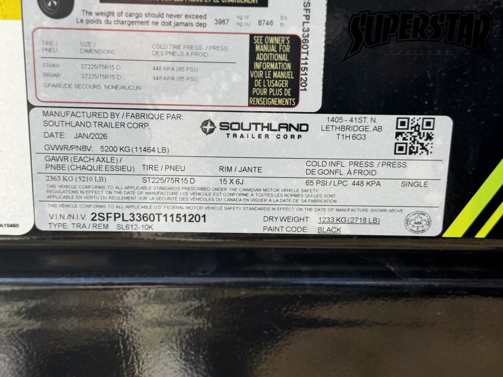 72"x12' Southland SL612-10K Dump