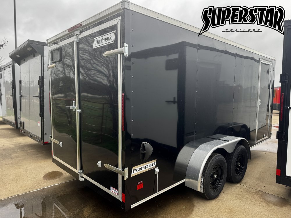 This 2026 Haulmark Passport 7x16 combines a sleek blacked-out base with chrome trim accents for a sharp, professional appearance. Built with practical upgrades like a max clearance rear door and semi-screwless exterior, this unit is ideal for hauling, contracting, or custom conversions.