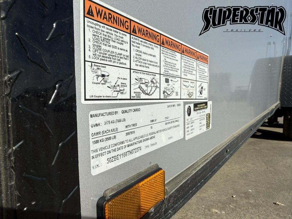 Features: 2 5/16" Coupler, 3/4" Plywood Flooring, 3/8" Plywood Walls, Brake-Away, D-Rings, Dexter Axles, LED Exterior Lights, LED Interior Lights, Ramp Door