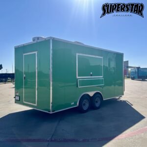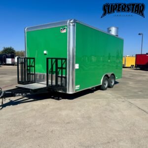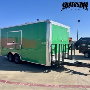 Durable steel frame with high-gloss green exterior and diamond plate trim.
