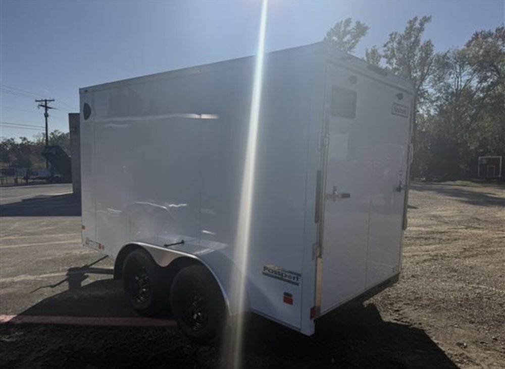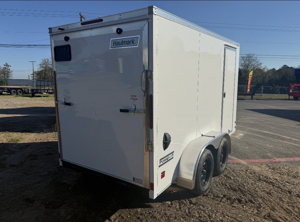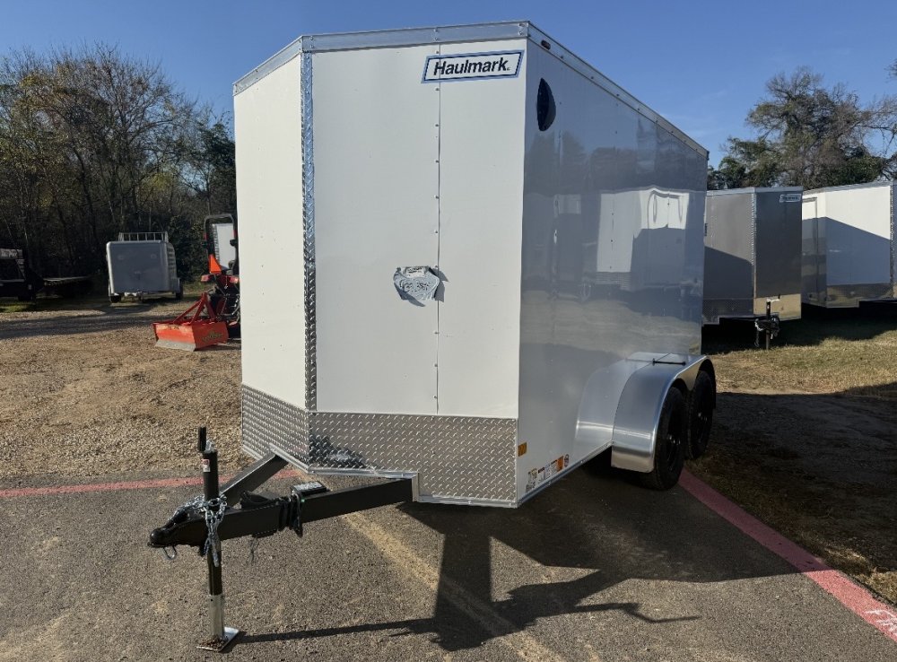 Fully enclosed 6x12 Haulmark trailer with clean white finish. Designed for daily use with a steel frame, smooth bumper pull towing, and versatile interior space for business, delivery, or personal hauling.