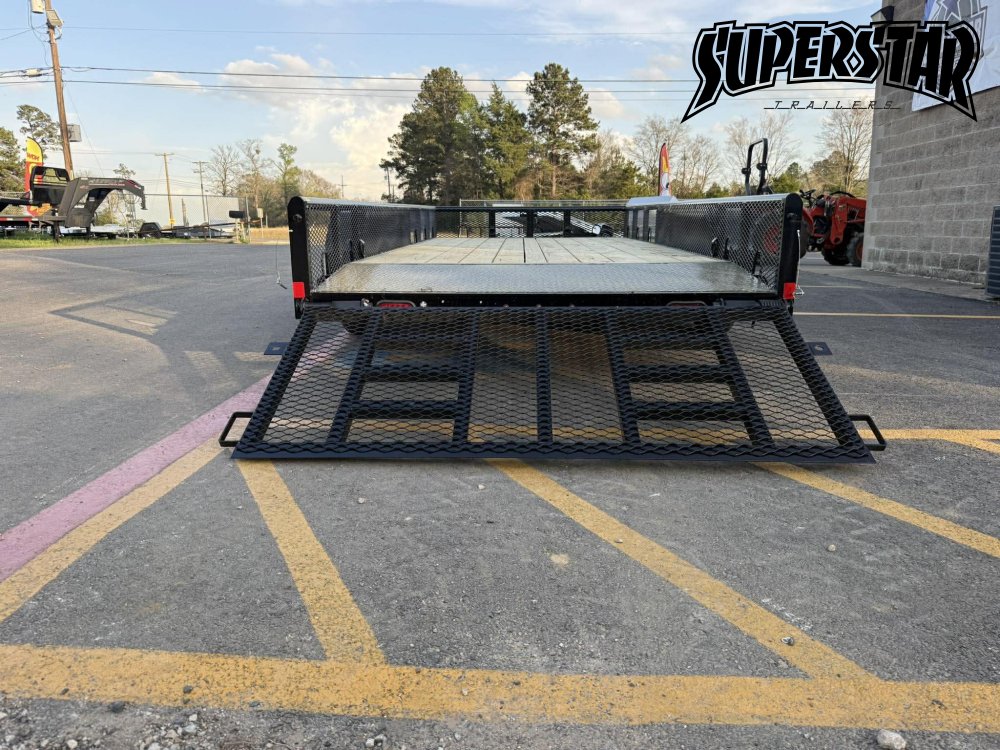 Full-width rear gate ramp for loading mowers, ATVs, small tractors, and equipment